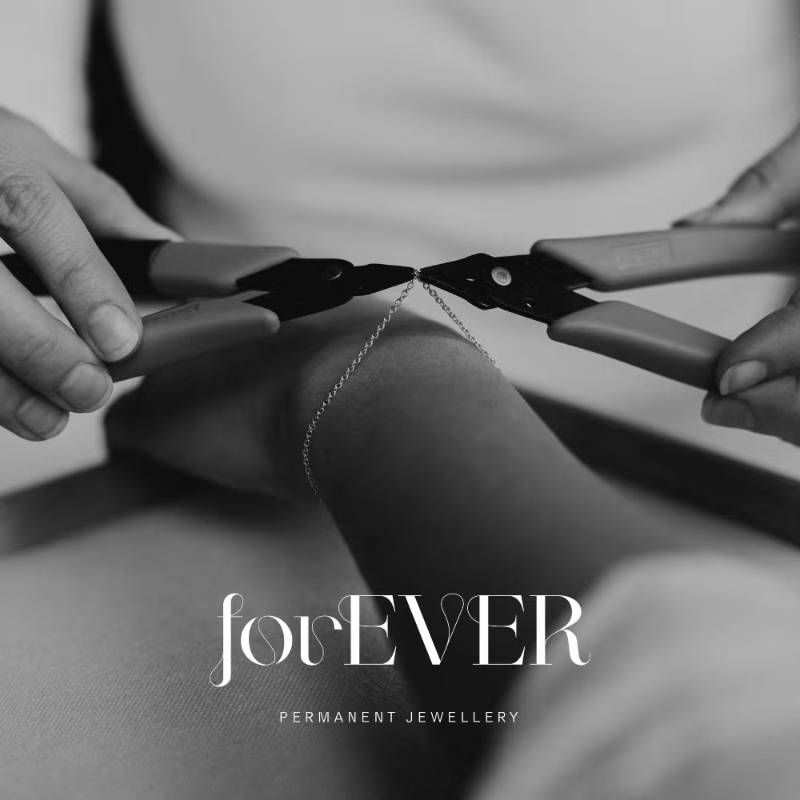 Permanent jewellery involves safely welding a chain closed to form an endless, enduring loop. Every piece is fitted to each individual person's wrist or ankle & welded shut.