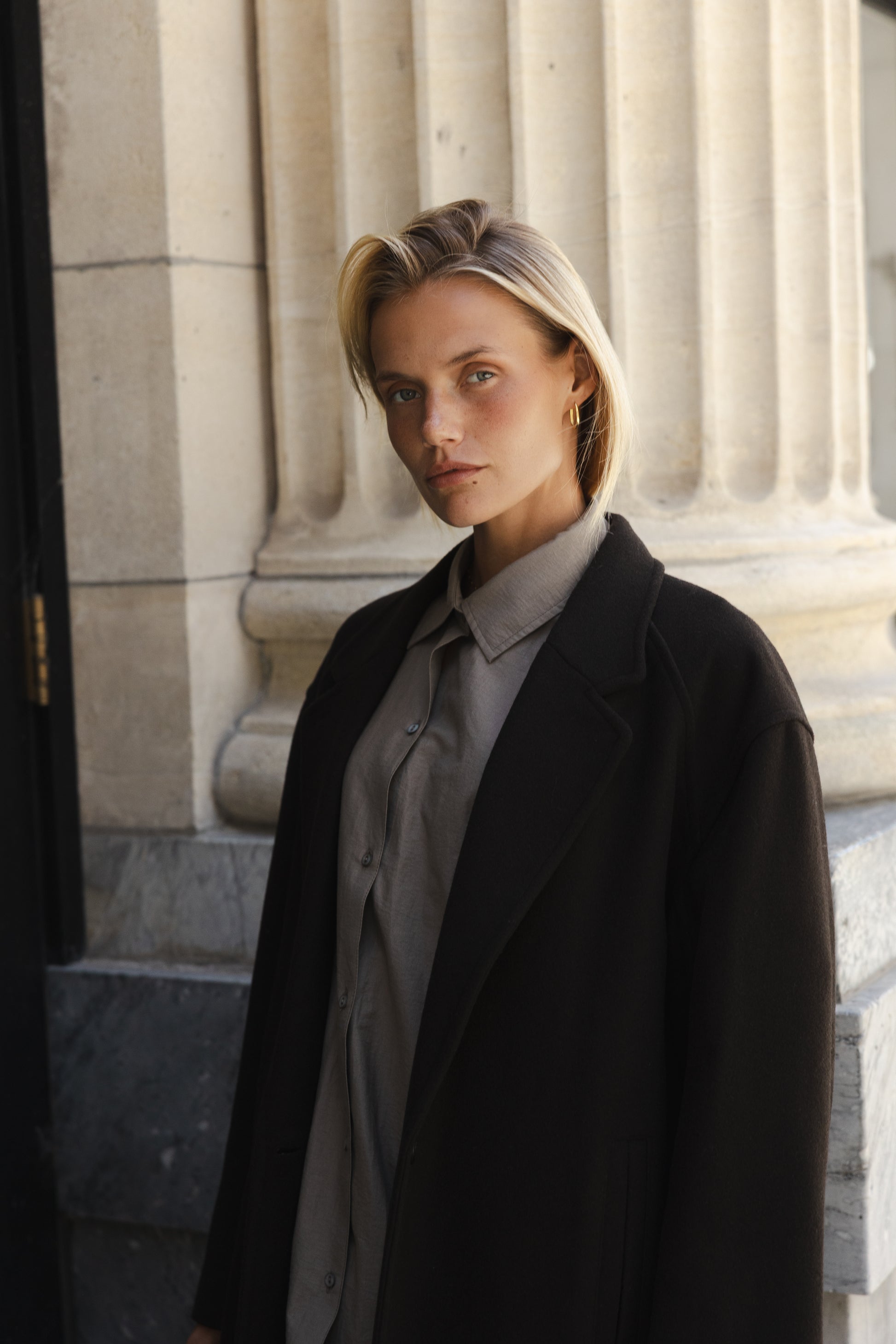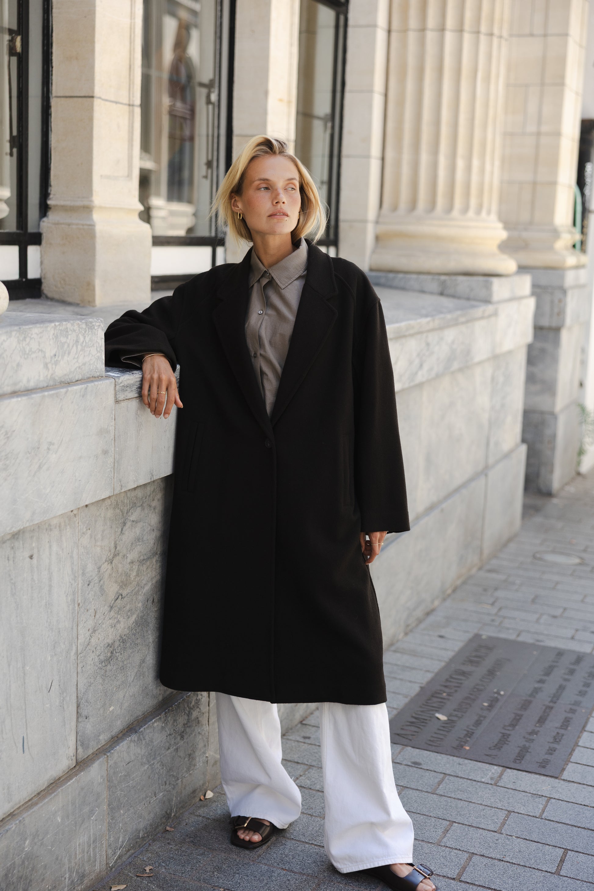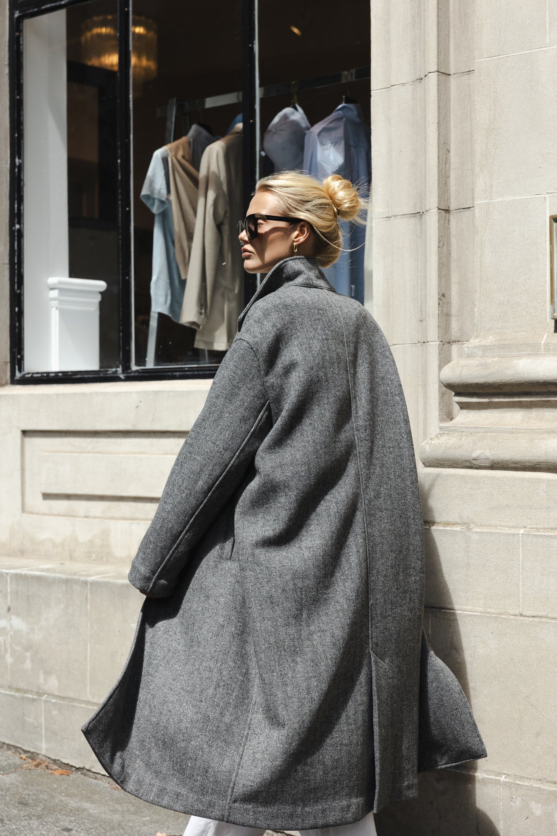 Crafted with enclosed seams, unlined for comfort, raglan shoulder, two piece sleeve, lapel button closure.