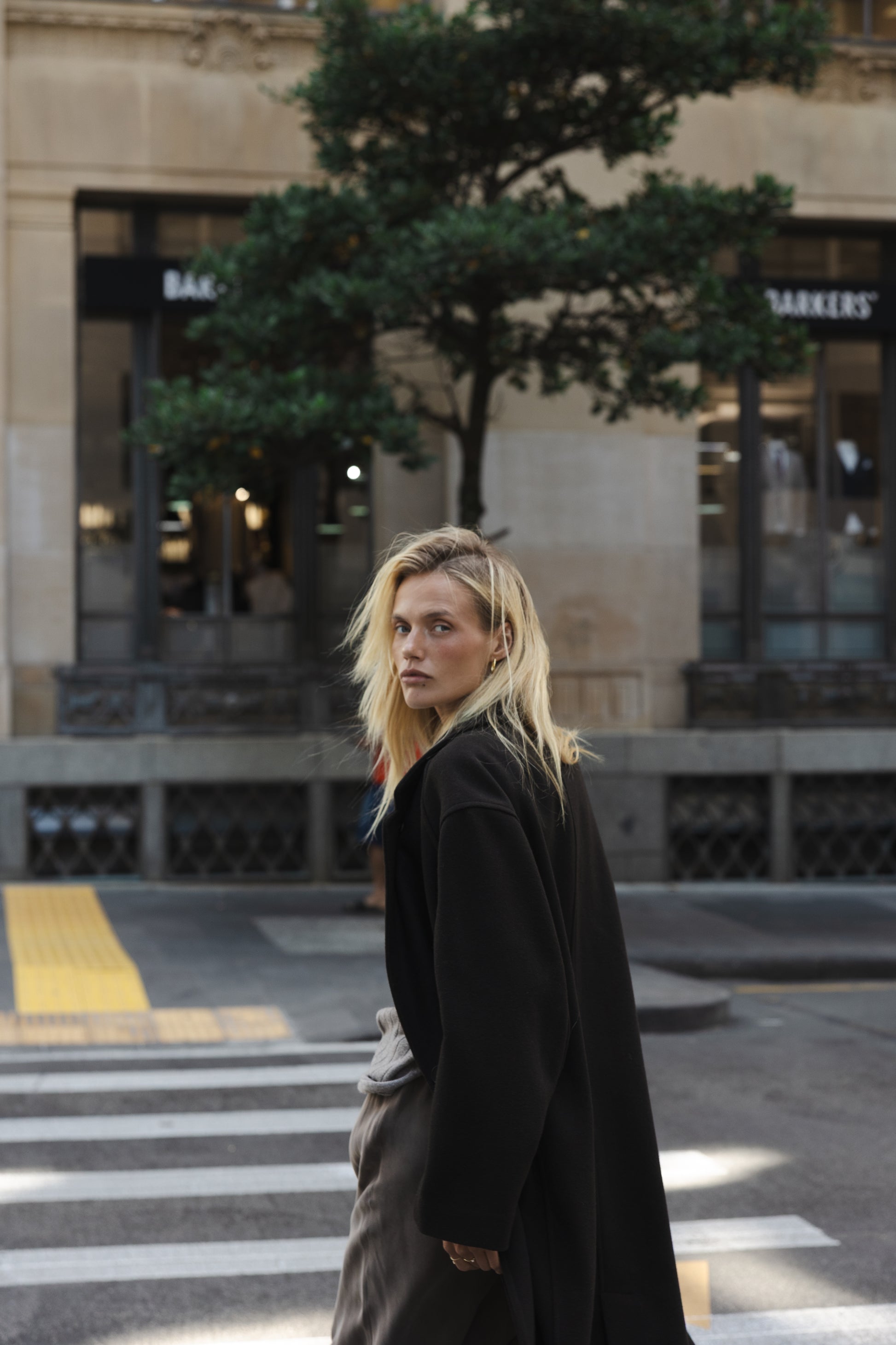 55% wool, 35% polyester, 10% rayon (liquorice)