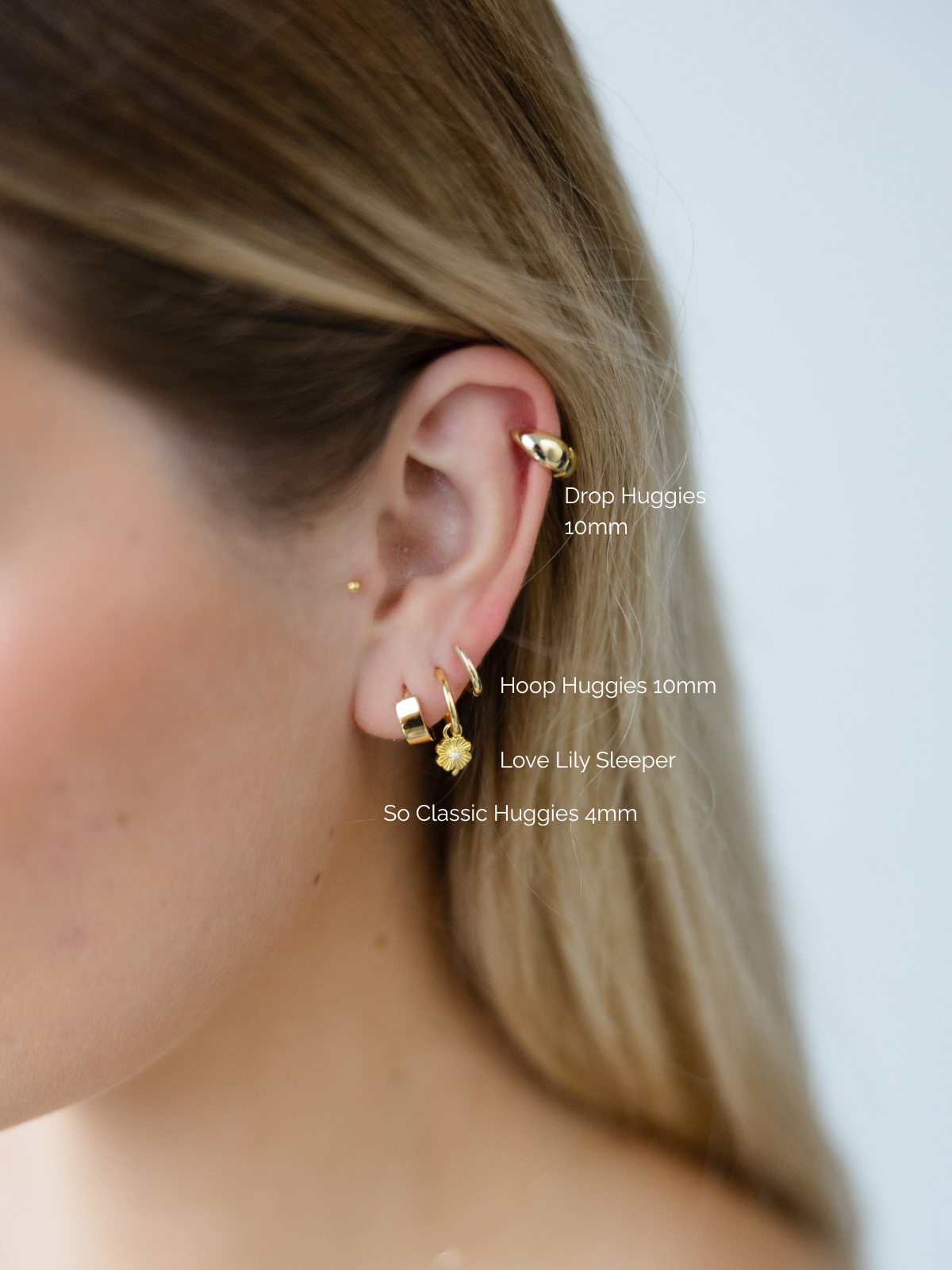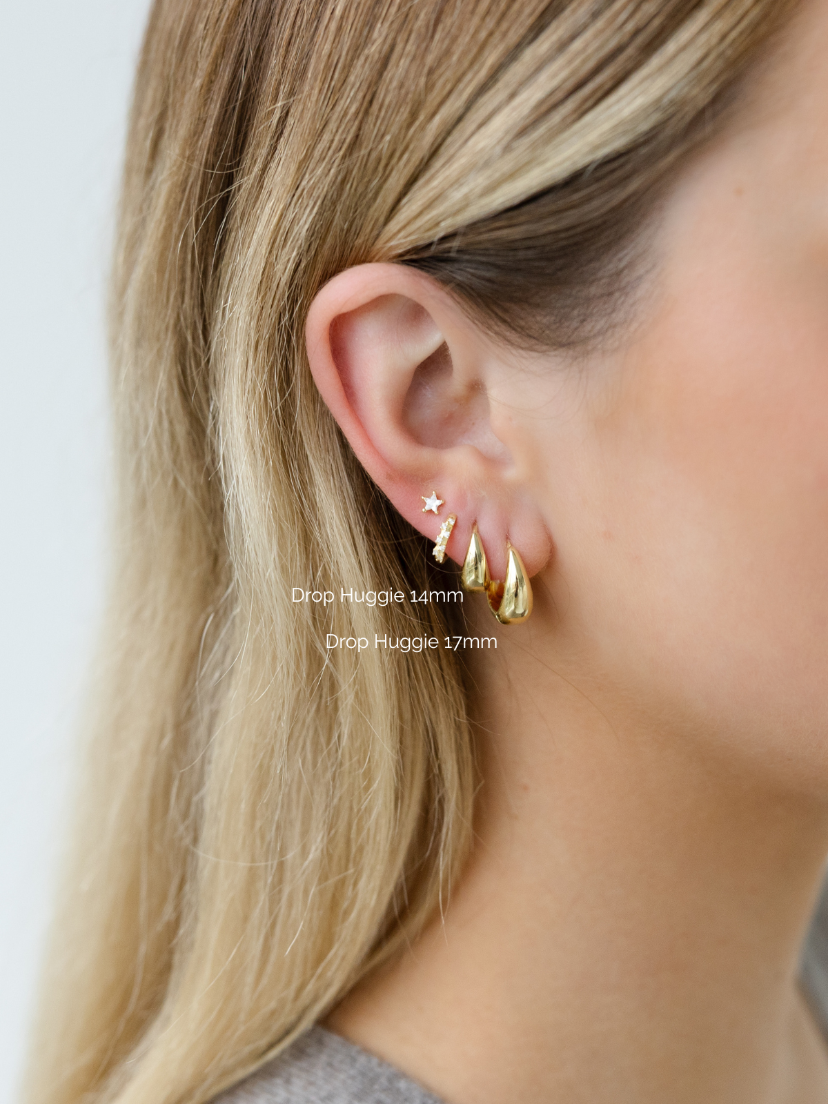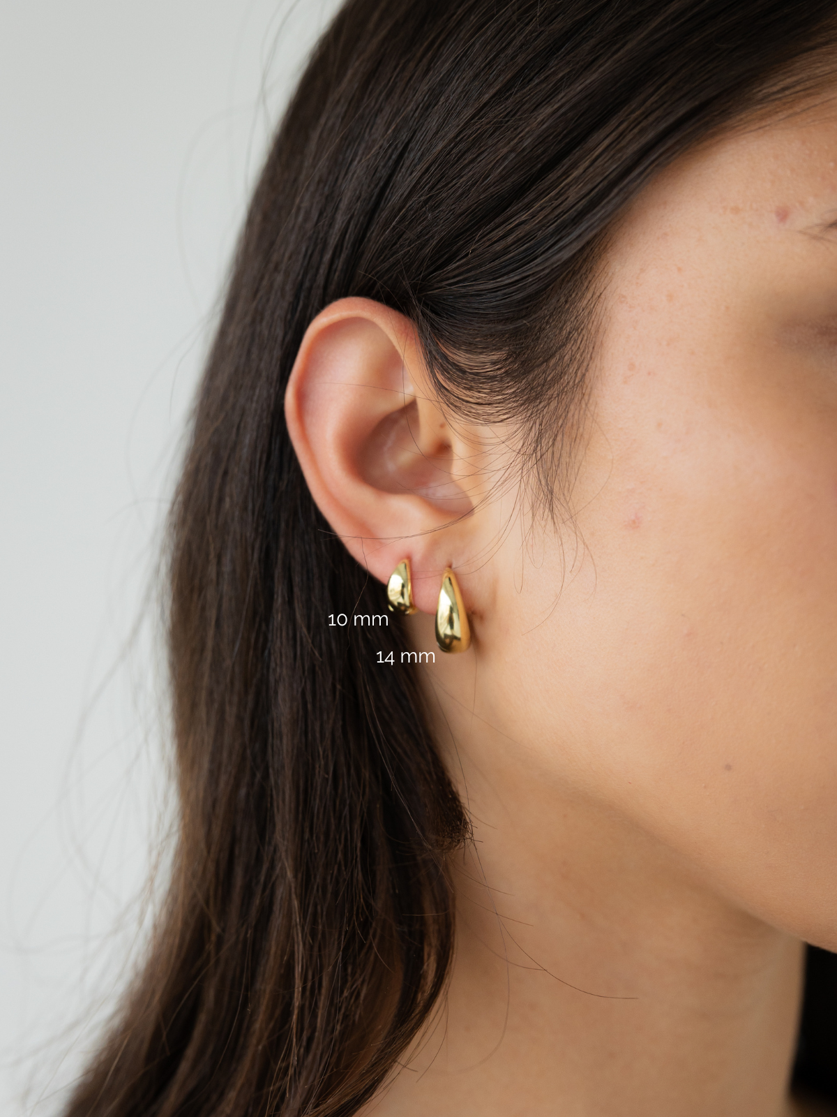 Minimal huggies with a smooth drop shape. Stack or wear solo, crafted to last.