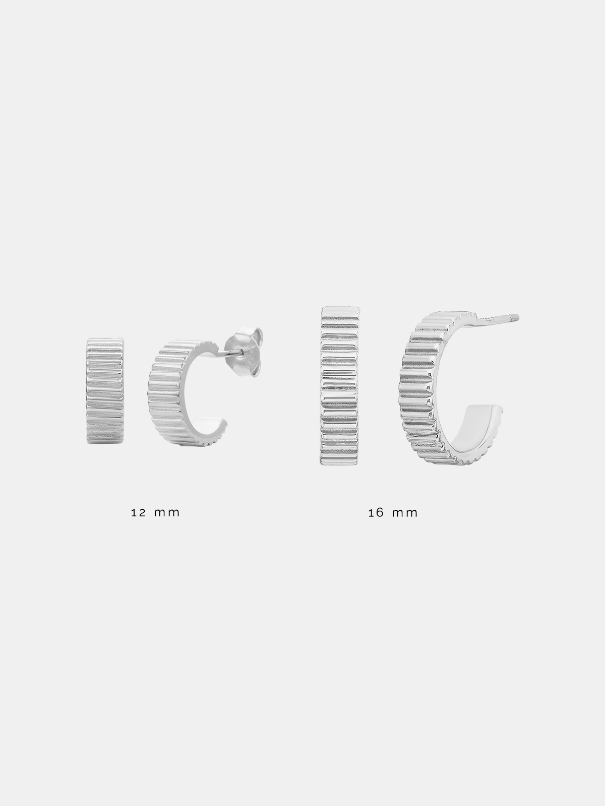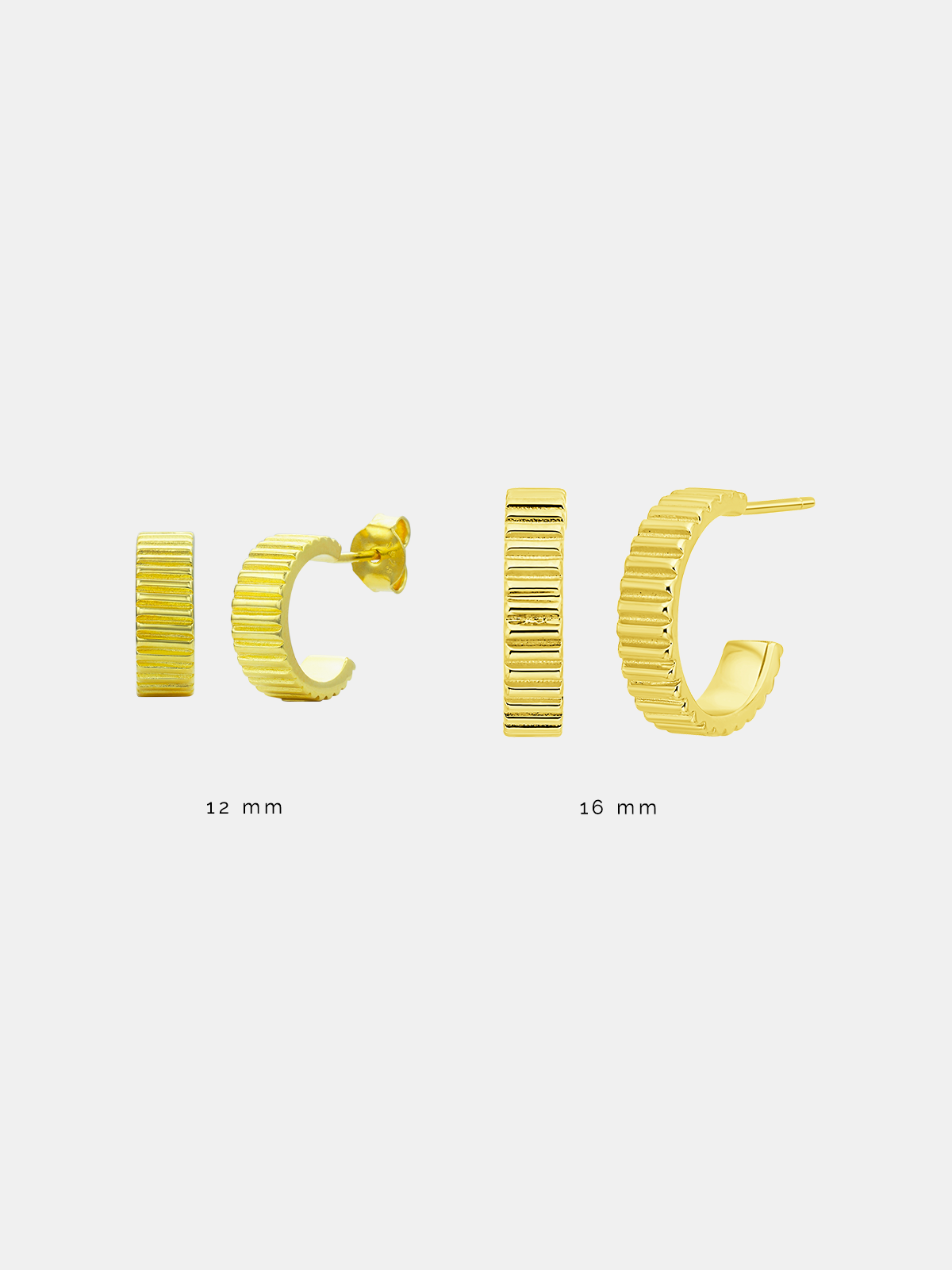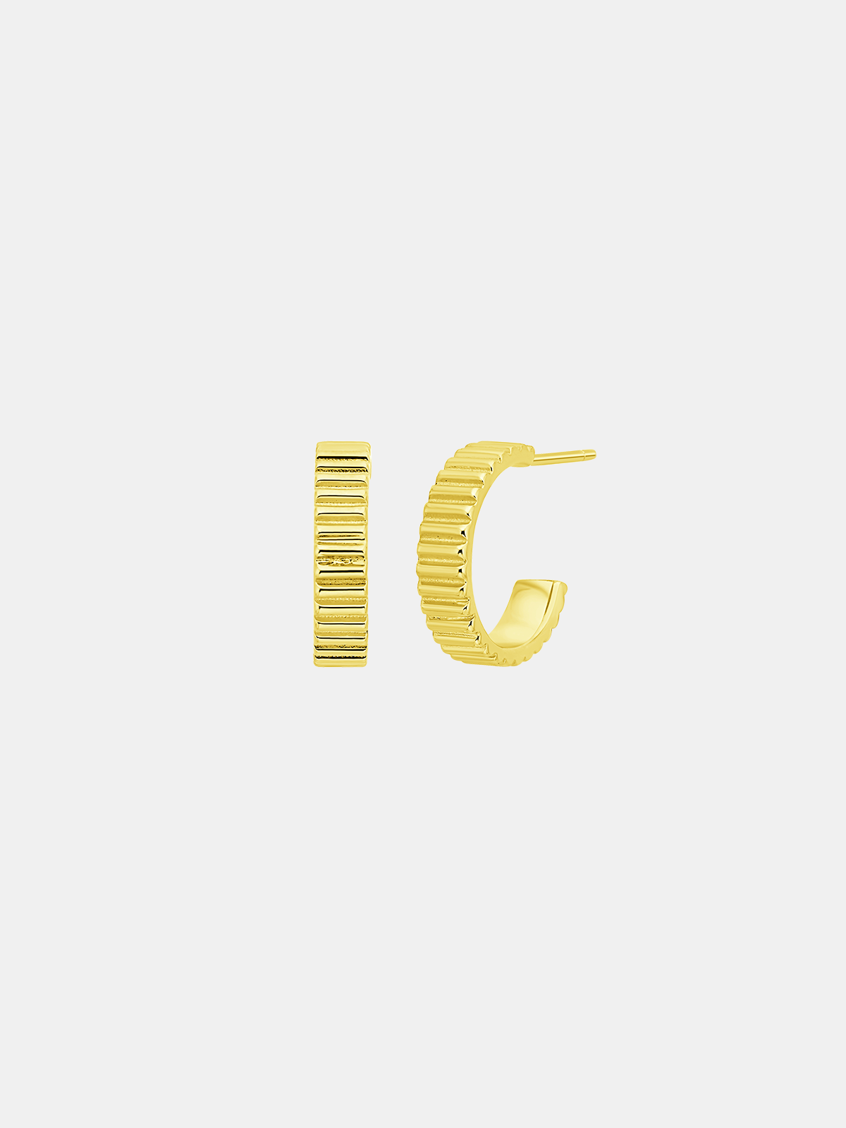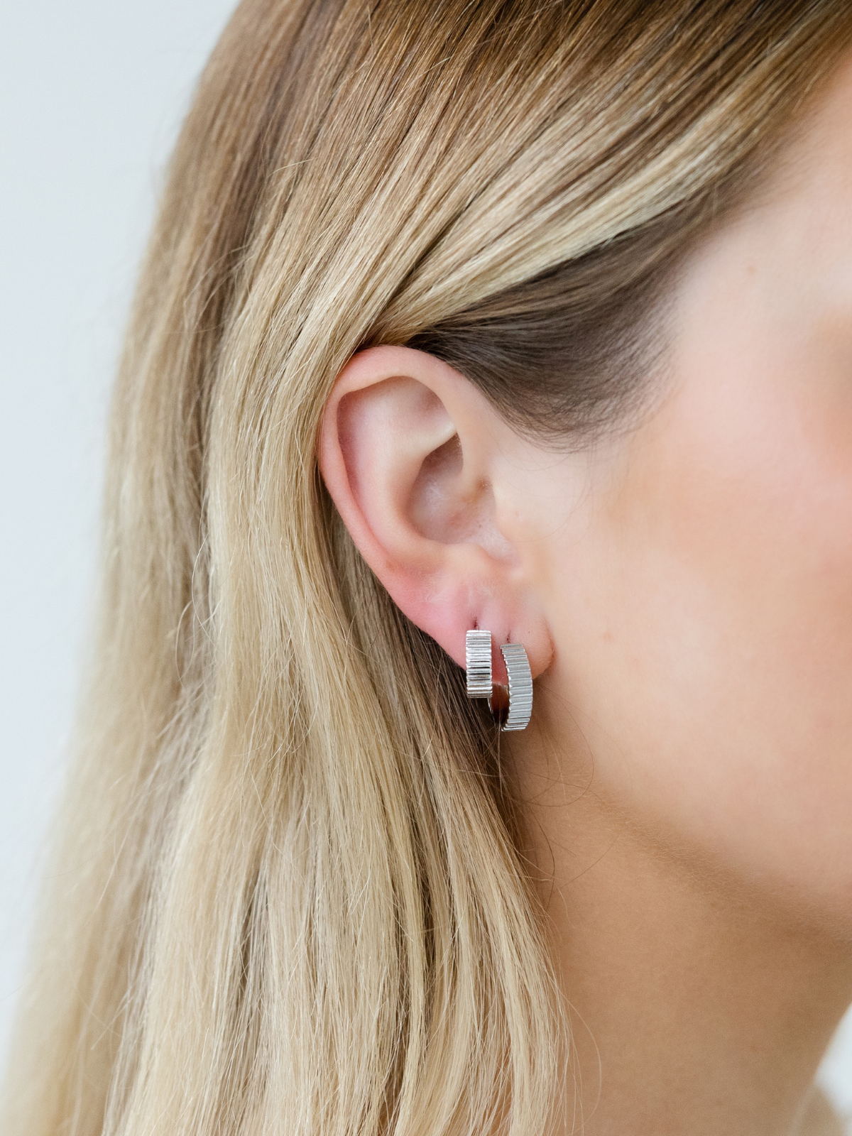 Textured linear hoop studs. Stack or wear solo, crafted to last.