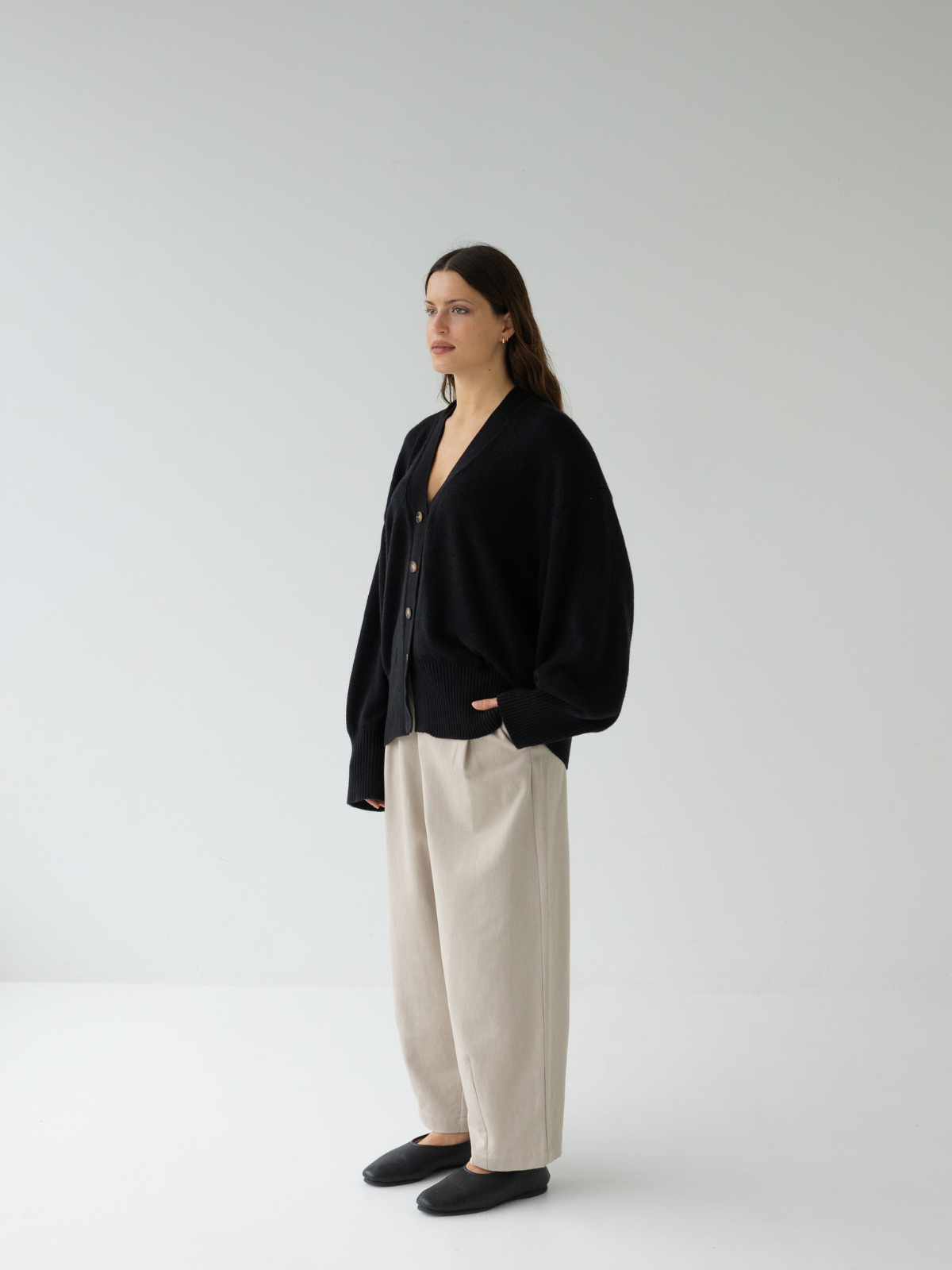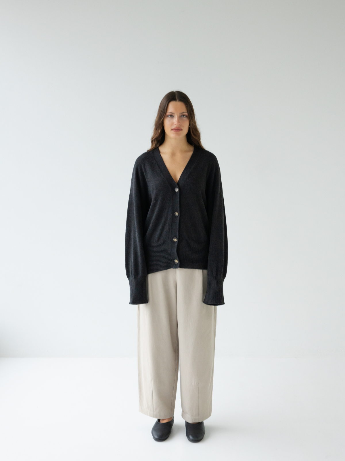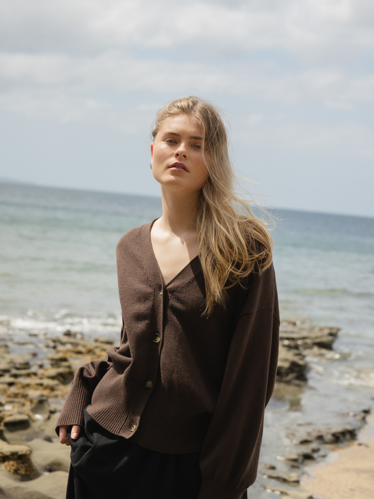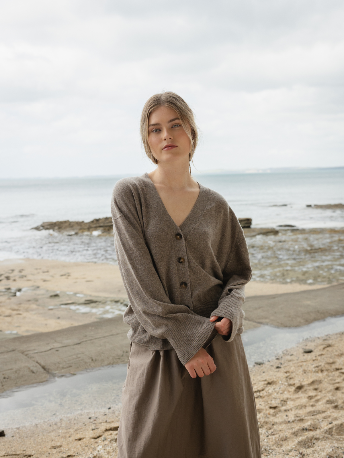 Our comfy oversized cardigan, a trans seasonal staple. Made from the softest cashmere & cotton. Features dropped shoulders, relaxed sleeves, large buttons & rib detail. We are in love!