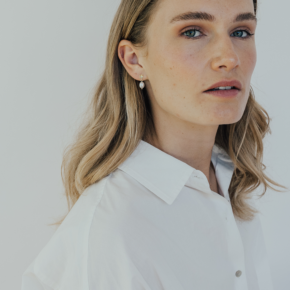 Our Daisy Day studs w. a dainty fresh water pearl.