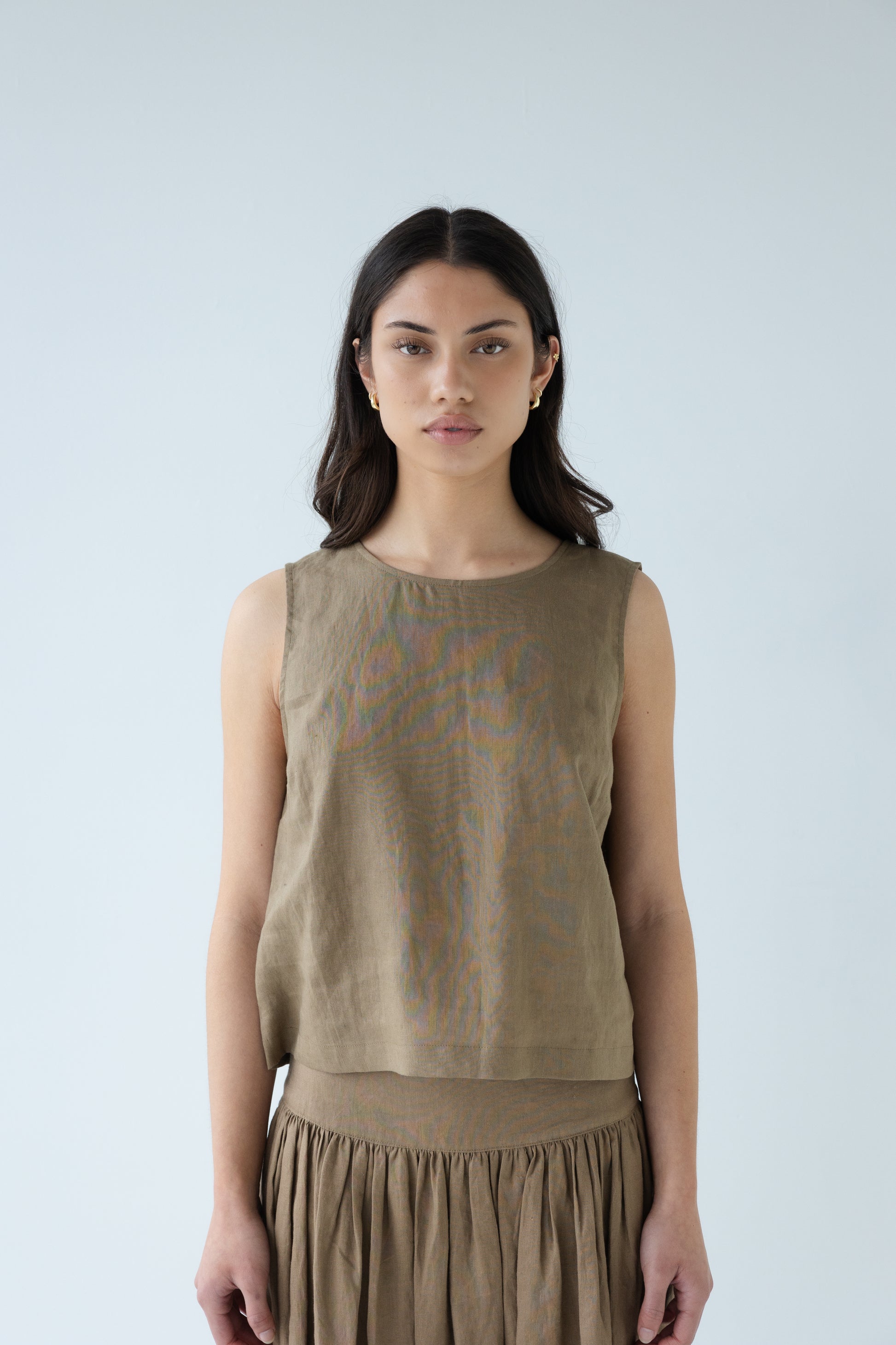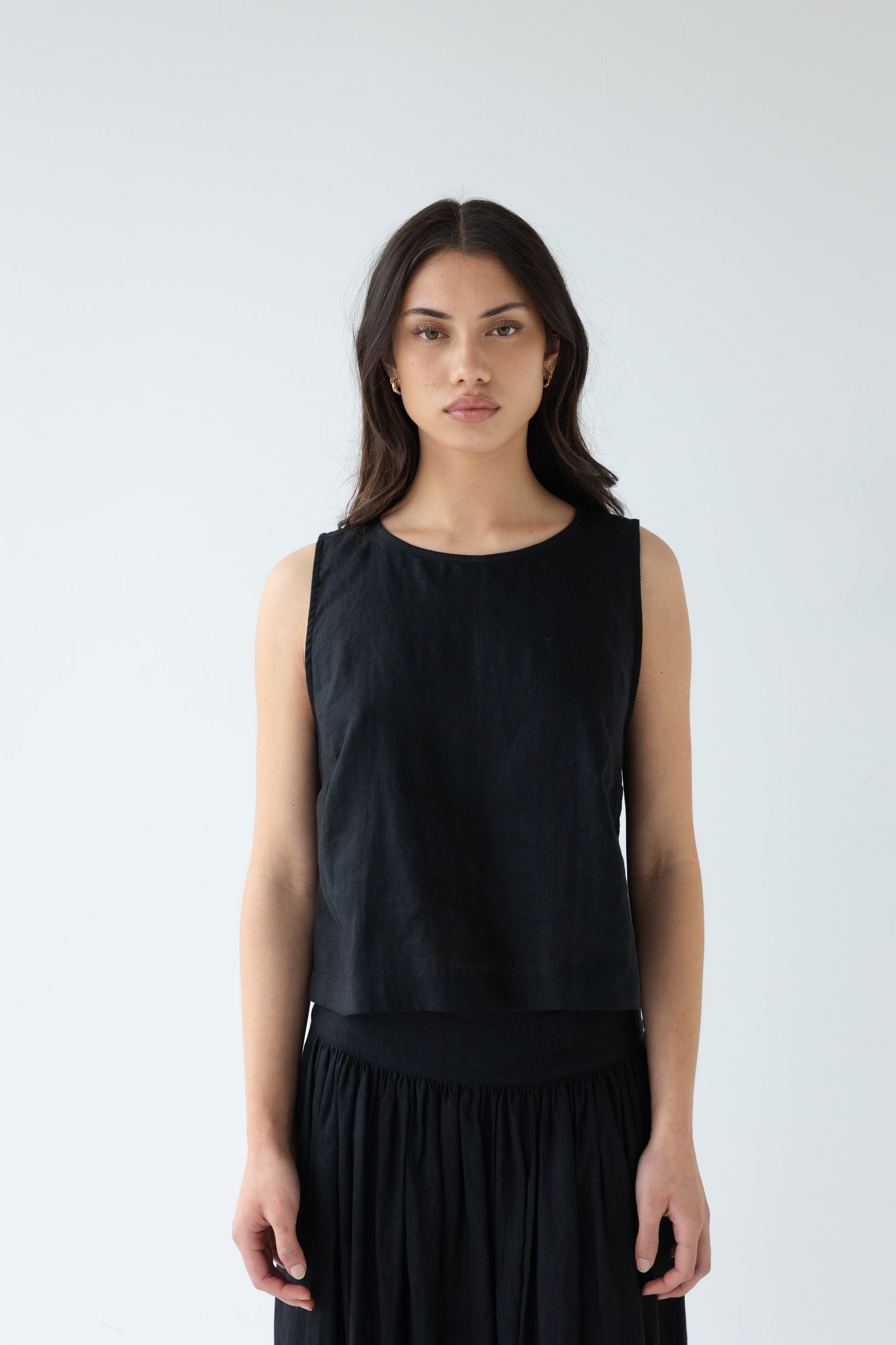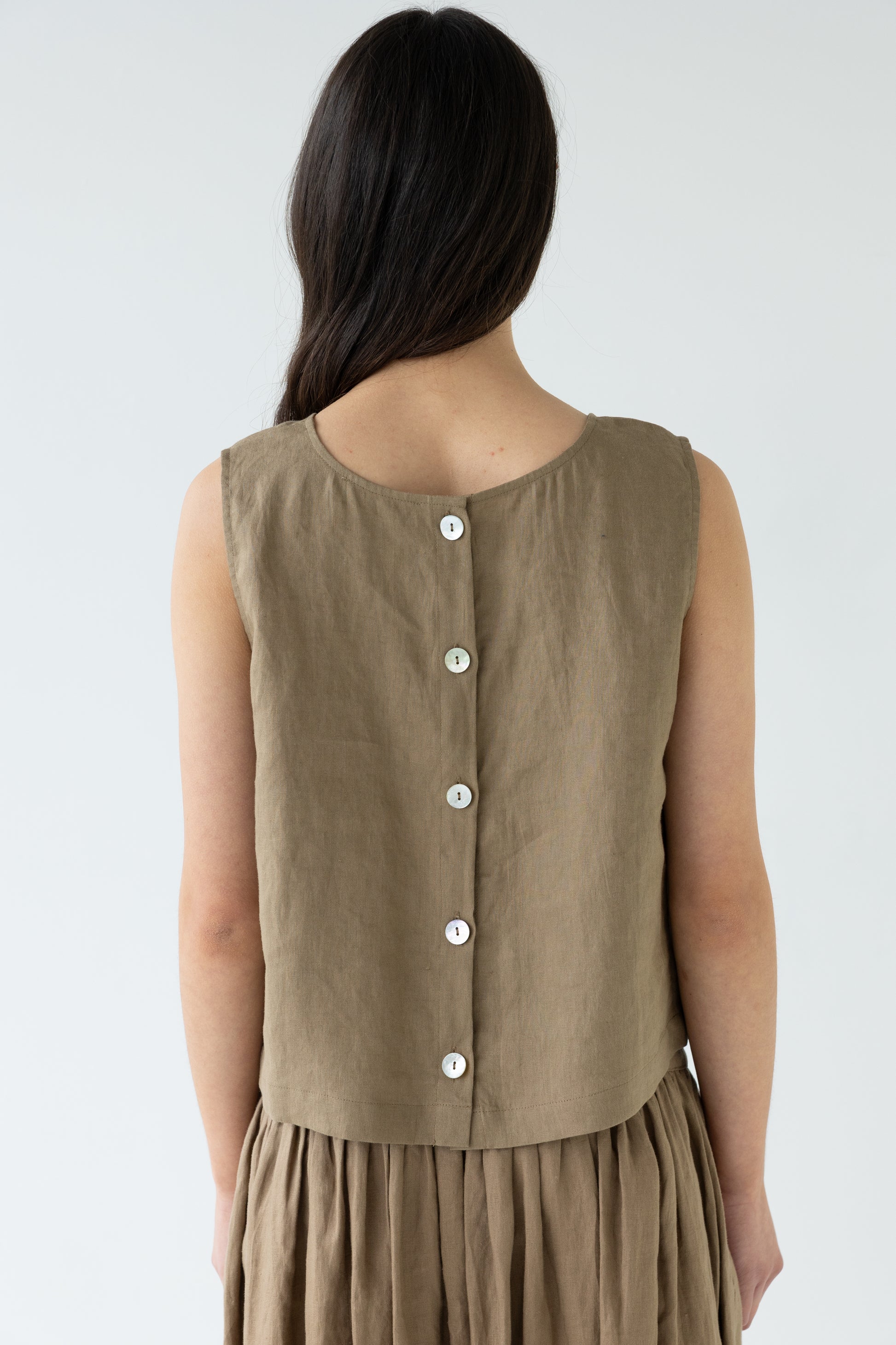 A sweet linen top with back button details. Unbutton a few for a relaxed look.