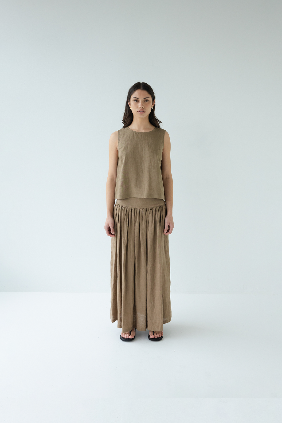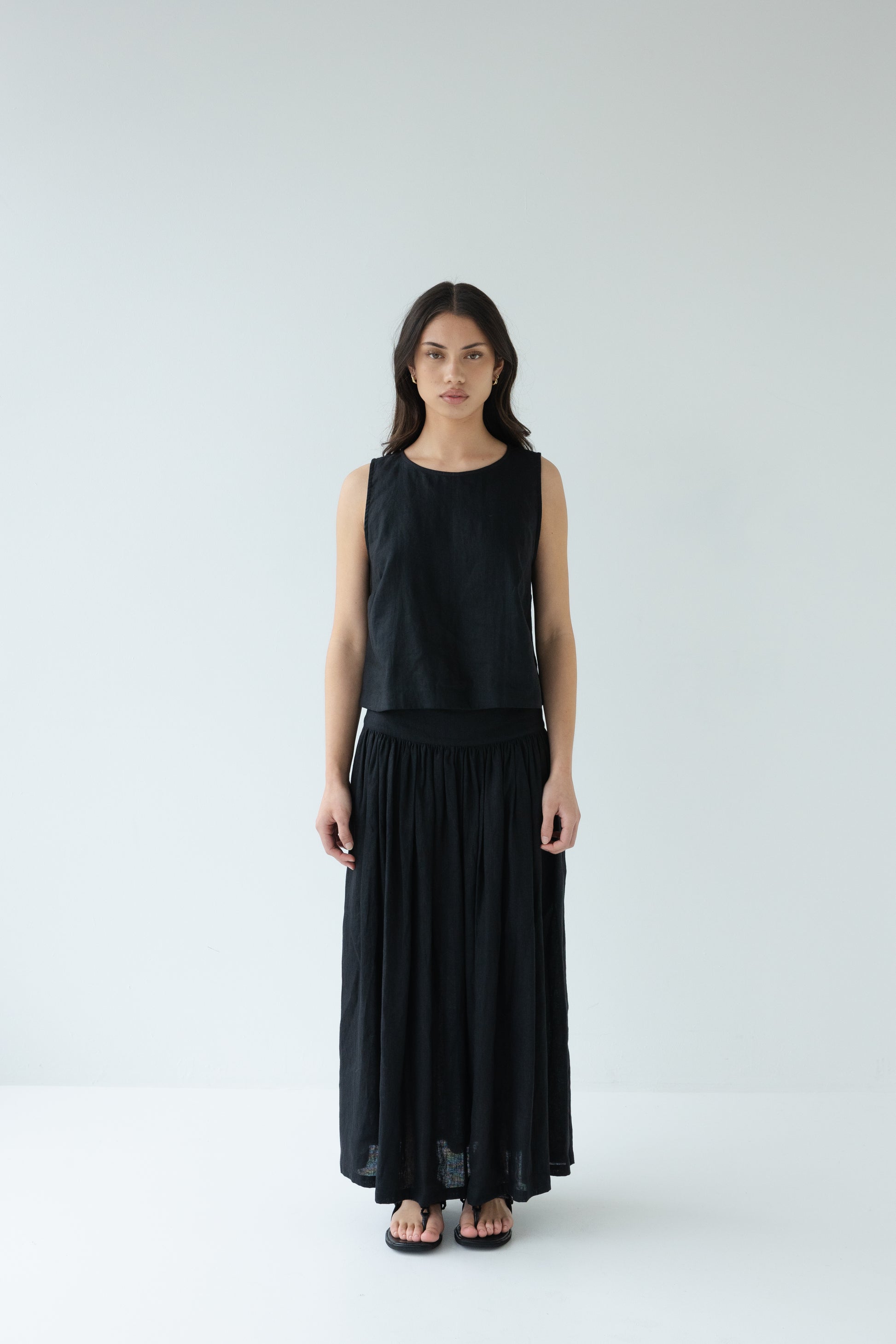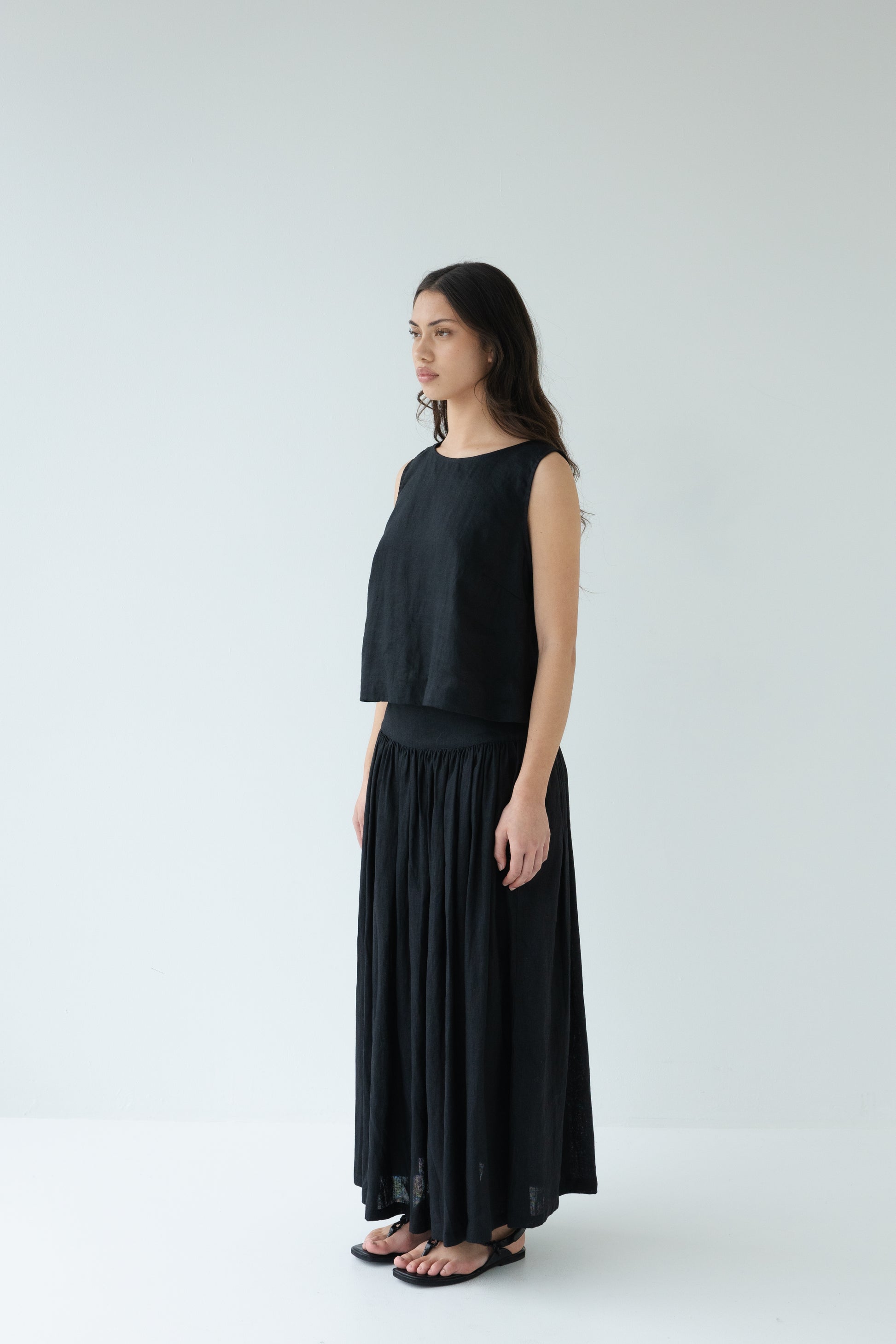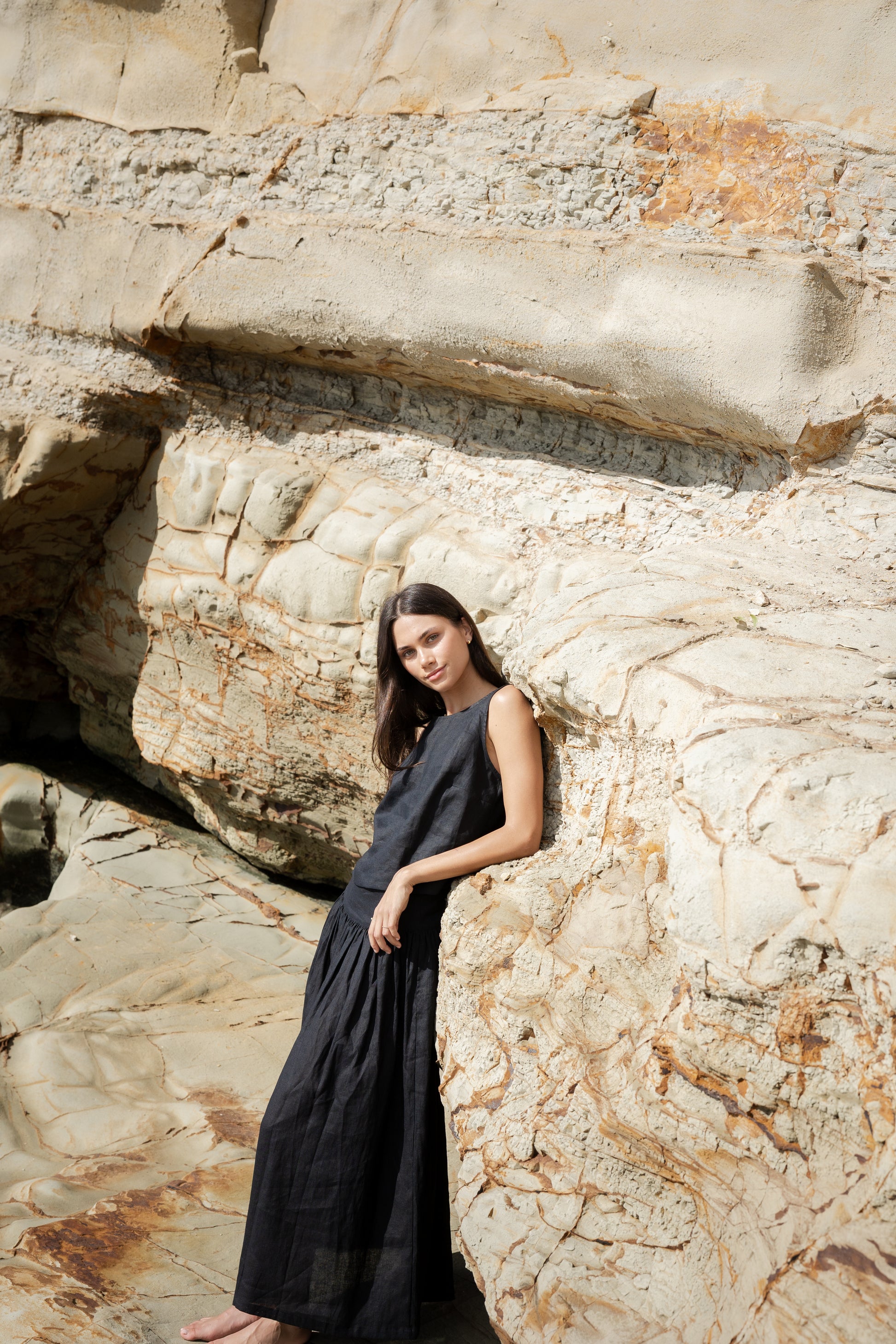 A sweet linen top with back button details. Unbutton a few for a relaxed look.