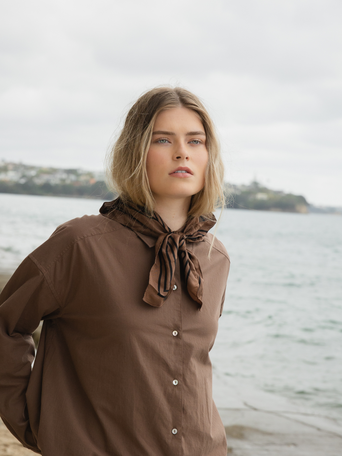 Button shirt with collar, boxy shape. Shorter than our standard oversized love this shirt. Wear with anything & everything year round.