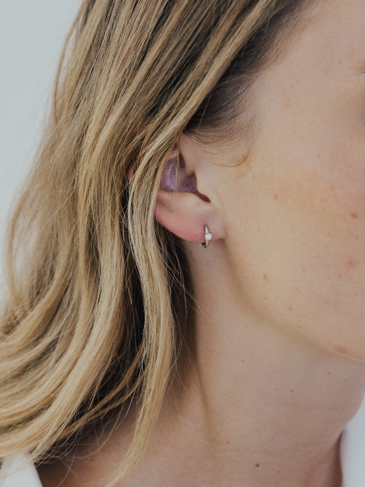 Effortlessly minimal with a touch of charm - micro huggies featuring a delicate mini pearl for everyday style.