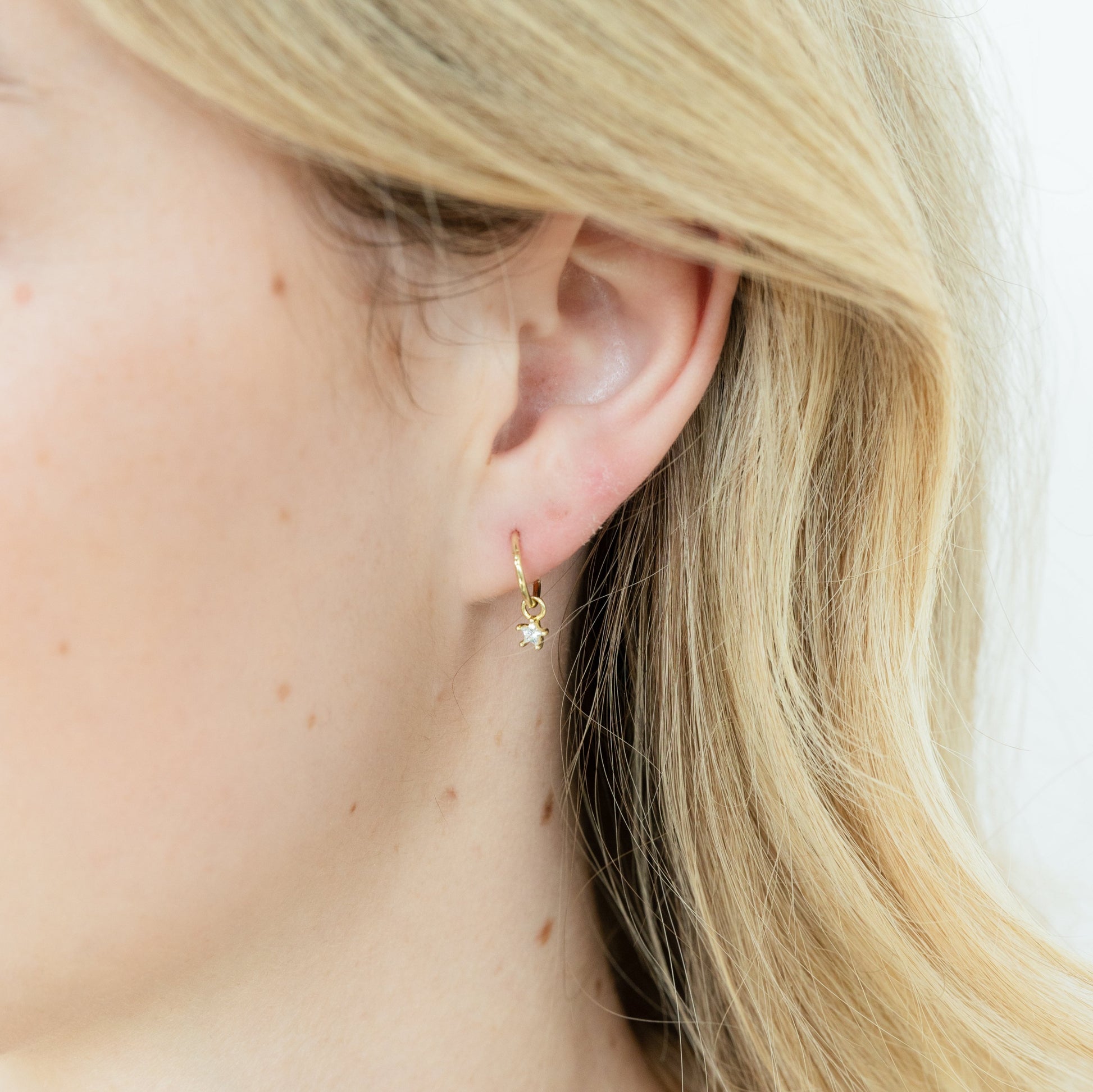 Zircon star pendants, suspended from our classic sleeper. A little glimmer & super celestial.